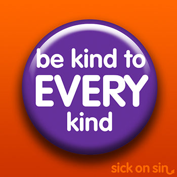 'Be Kind To Every Kind' is a Sick On Sin original design. Our accessories are printed using high quality inks/paper resulting in bold, clear and colourful graphics. They are hand-pressed by us using professional quality machines and parts. Please see a description of all the available accessories below: