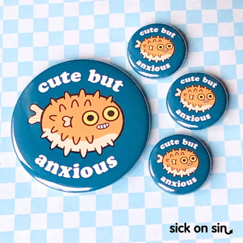 Grab 'Cute But Anxious' on your choice of fun handmade accessory item: