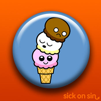 This adorable design features an ice cream cone with a happy strawberry, sleepy vanilla and slightly worried chocolate scoop.