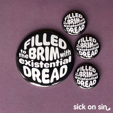Grab 'Filled To The Brim With Existential Dread' on your choice of fun handmade accessory item: