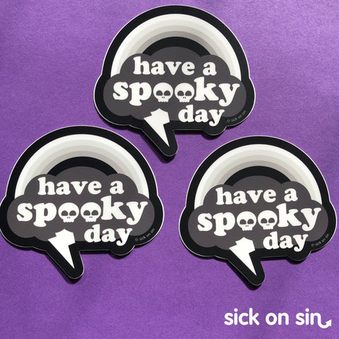 This high quality sticker features our cute original Have A Spooky Day design. It is made from thick, waterproof, super durable vinyl with a permanent adhesive. Listing is for ONE sticker.