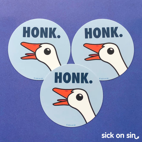 This listing is for ONE high quality die cut sticker featuring our cute original Honk Goose design. It is made from thick, waterproof, durable vinyl with a permanent adhesive.