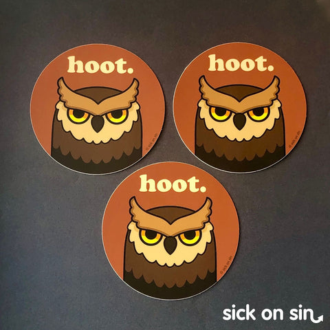 This listing is for ONE high quality die cut sticker featuring our cute original Hoot Owl design. It is made from thick, waterproof, durable vinyl with a permanent adhesive.