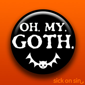 'Oh. My. Goth.' is a Sick On Sin original design. Our accessories are printed using high quality inks/paper resulting in bold, clear and colourful graphics. They are hand-pressed by us using professional quality machines and parts. Please see a description of all the available accessories below: