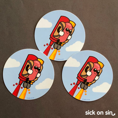 This listing is for ONE high quality die cut sticker featuring our cute original Super Dog design. It is made from thick, waterproof, durable vinyl with a permanent adhesive.