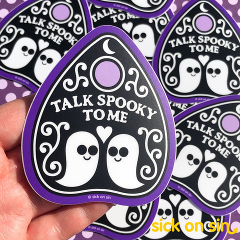 This high quality sticker features our cute original Talk Spooky To Me design. It is made from thick, waterproof, super durable vinyl with a permanent adhesive. Listing is for ONE sticker.