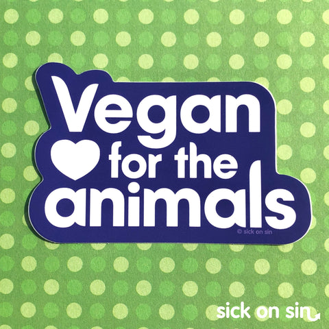 Listing is for ONE high quality die cut sticker featuring our cute original Vegan For The Animals design. It is made from thick, waterproof, durable vinyl with a permanent adhesive.Ā