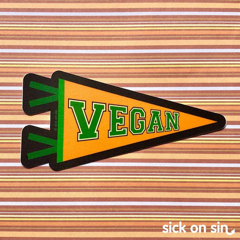 This listing is for ONE high quality die cut sticker featuring our cute original Vegan Pennant design. It is made from thick, waterproof, durable vinyl with a permanent adhesive.