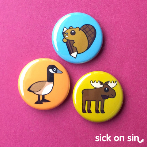 Weâve grouped a few designs together to make this fun themed set! Get the pack as either 1 inch pins or 1 inch magnets - your choice!