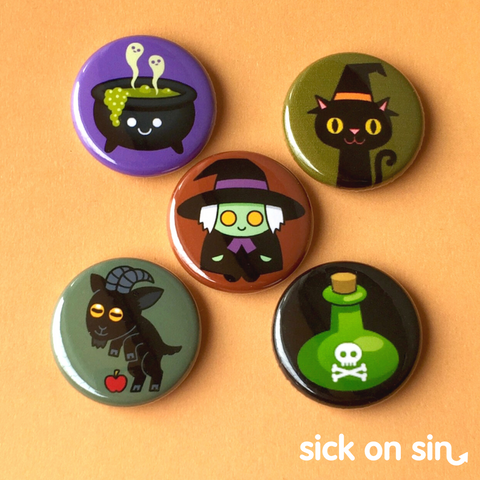 Weâve grouped a few designs together to make this fun themed set! Get the pack as either 1 inch pins or 1 inch magnets - your choice!
