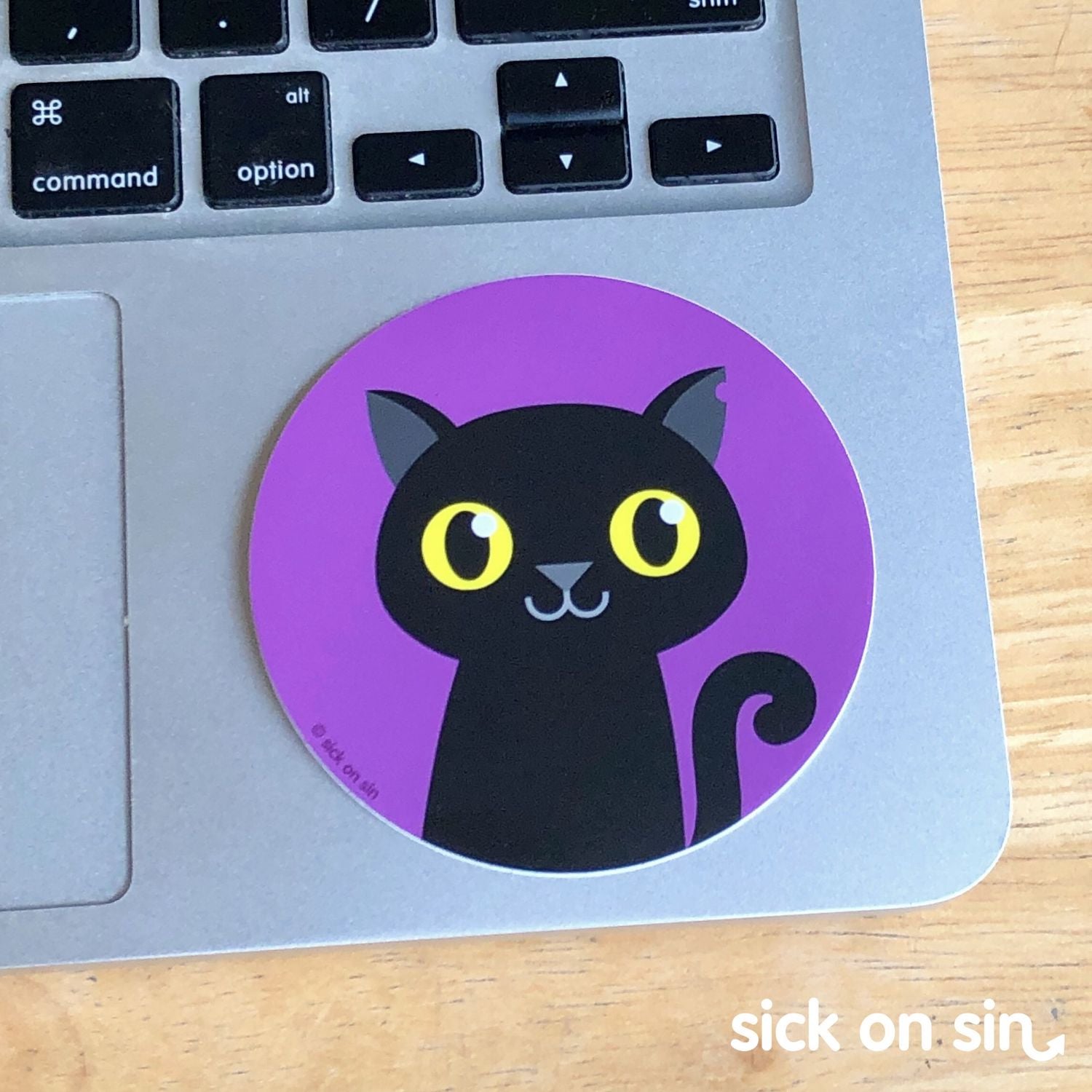 This listing is for ONE high quality die cut sticker featuring our cute original Black Cat design. It is made from thick, waterproof, durable vinyl with a permanent adhesive.