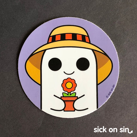 This listing is for ONE high quality die cut sticker featuring our cute original Flower Ghoul design. It is made from thick, waterproof, durable vinyl with a permanent adhesive.