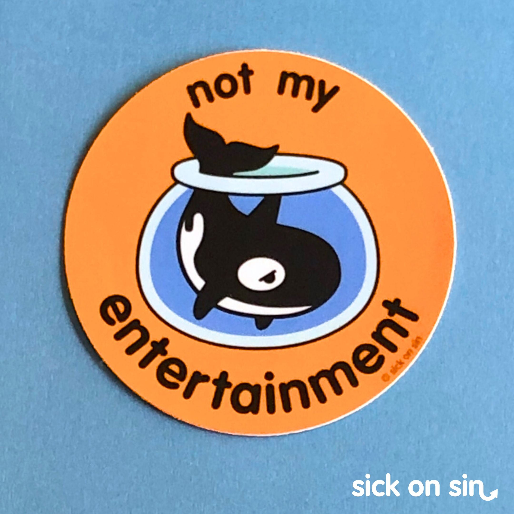 This listing is for ONE high quality die cut sticker featuring our cute original Not My Entertainment (Orca) design. It is made from thick, waterproof, durable vinyl with a permanent adhesive.
