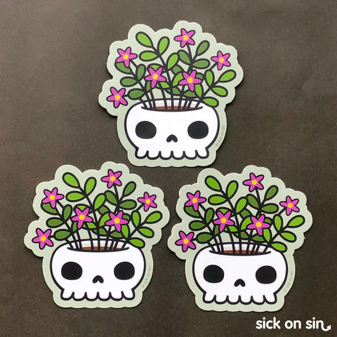 This listing is for ONE high quality die cut sticker featuring our cute original Skull Planter design. It is made from thick, waterproof, durable vinyl with a permanent adhesive.