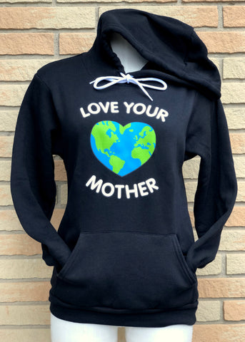 Get our cute Love Your Mother design on a black comfy hooded sweatshirt! This high quality pullover hoodie is perfect for wearing while strutting around town, lounging on the couch, hiking through the woods, sitting around the campfire, or anything in-between!