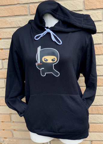 Get our sneaky lil' Ninja design on a black comfy hooded sweatshirt! This high quality pullover hoodie is perfect for wearing while strutting around town, lounging on the couch, hiking through the woods, sitting around the campfire, or anything in-between!