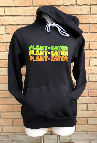 Get our retro font inspired Plant-Eater design on a black comfy hooded sweatshirt! This high quality pullover hoodie is perfect for wearing while strutting around town, lounging on the couch, hiking through the woods, sitting around the campfire, or anything in-between!