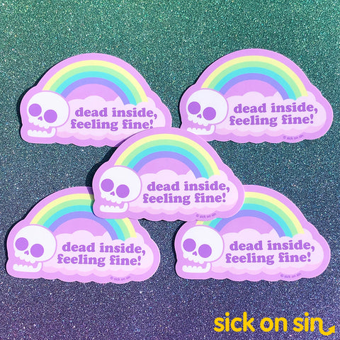 This high quality die cut sticker features our cute original Dead Inside Feeling Fine design. It is made from thick, waterproof, durable vinyl with a permanent adhesive. Listing is for ONE sticker.