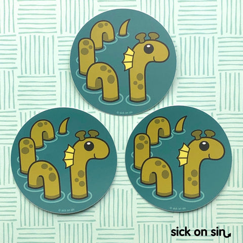 This listing is for ONE high quality die cut sticker featuring our cute original Loch Ness Monster design. It is made from thick, waterproof, durable vinyl with a permanent adhesive.