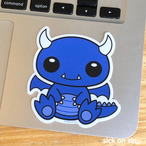 This listing is for ONE high quality die cut sticker featuring our cute original Blue Dragon design. It is made from thick, waterproof, durable vinyl with a permanent adhesive.