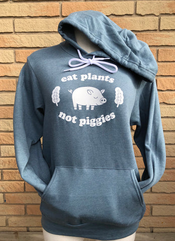 Get our cute Eat Plants Not Piggies design on a Heather Slate comfy hooded sweatshirt! This high quality pullover hoodie is perfect for wearing while strutting around town, lounging on the couch, hiking through the woods, sitting around the campfire, or anything in-between!
