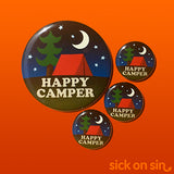 Does your perfect get-away involve escaping to the great outdoors, chilling around a campfire and sleeping under the stars? If so, this Happy Camper design is the one for you! Get our fun Happy Camper design on your choice of: 1" pin back...