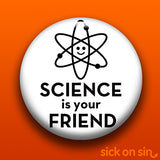 Science is interesting and exciting. But most importantly, science is real! Trust in it, it's your friend, yo!Treat yourself to this fun Science Is Your Friend design on your choice of: 1" small pin back button 1" small magnet 1"... -